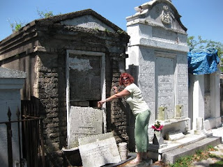 I had made a list of specific places in the Quarter that are supposed to be haunted (you know me and my ghost stories). One of them was the Lalaurie Mansion, supposed to be one of the most haunted locales in New Orleans. Madame Lalaurie was a high-falutin' Creole Society lady who, it seemed, had a sadistic streak and liked to torture and kill her slaves. Witnesses saw her chasing and whipping a terrified young slave girl who leaped to her death from the roof. Her body is alleged to be buried in the courtyard garden. One day the cook, who was kept chained to the stove, couldn't take it any longer and started a fire in the kitchen. When people came to put out the fire, they discovered several slaves chained in the attic. They had been tortured in all sorts of gruesome ways. Madame Lalaurie escaped the enraged mob that gathered but her house is said to still be haunted by the slaves she tortured and murdered.